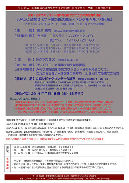 「JACC企業セミナー講師養成講座・メンタルヘルス対策編」