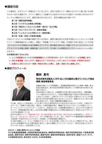 この度、JACCでは、企業・団体からリピート依頼が来るメンタルセミナー講師を目指す方のための