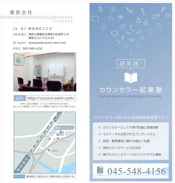 誰もが日常的にリーズナブルに、メンタルトレーニングが出来るメンタルジムを全国展開している株式会社こころでは、本気でカウンセリングルームを開業したいカウンセラーのために、実践型のカウンセリングルーム起業セミナーを開講します。