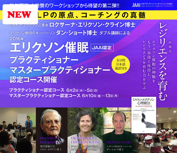 エリクソン財団のキーパーソンであるダン・ショート博士の両名による、本物のエリクソン催眠の中級レベルの内容が学べる講座を開催いたします。